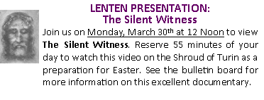 PLEASE NOTE: SIGN UP SHEETS ARE IN THE CHURCH LOBBY FOR ALL MASSES FOR