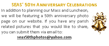We are also featuring a 50th anniversary photo page on our website. If you have any parish related pictures that you would like to share, you can submit them via email to seas50thphotos@yahoo.com.